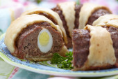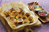 domowej roboty kiełbasa, brytyjski pikantne ciasto przekąska
