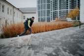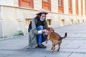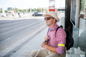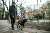 Zdjęcie "Starszy niewidomy mężczyzna z psem przewodnikiem siedzi na ławce w parku w mieście." może być wykorzystywane do celów osobistych i komercyjnych zgodnie z warunkami zakupionej licencji Royalty-free. Obraz jest dostępny do pobrania w jakości wysokiej rozdzielczości do 5760x3840.