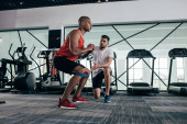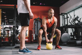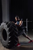 młody afrykański sportowiec amerykański podnoszenie ciężaru w siłowni