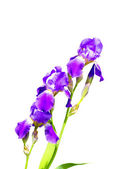 Izolacja kwitnące żywe fioletowe fioletowe ogromne kwiaty gladiolus zbliżyć w pionowym formacie. Gladiolus kwiat na białym tle.