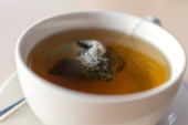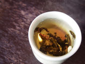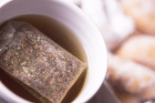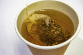 Herbata workowa z liści koki w wodzie w papierowej filiżance
