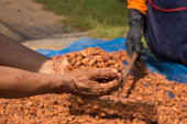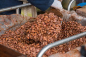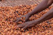 Ziarna kakao są fermentowane w drewnianym pudełku, aby rozwinąć czekoladę