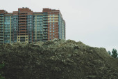 Plac budowy z blokami betonowymi i ciężkimi maszynami