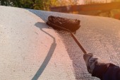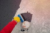 Zdjęcie "Pracownik stosuje mastyks bitumiczny na fundamencie" może być wykorzystywane do celów osobistych i komercyjnych zgodnie z warunkami zakupionej licencji Royalty-free. Obraz jest dostępny do pobrania w jakości wysokiej rozdzielczości do 5760x3840.