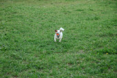 Samotny smutny młody pies w parku czeka na nowych właścicieli