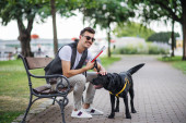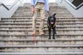 Zdjęcie "Nierozpoznany młody niewidomy z białą laską i psem przewodnikiem w mieście." może być wykorzystywane do celów osobistych i komercyjnych zgodnie z warunkami zakupionej licencji Royalty-free. Obraz jest dostępny do pobrania w jakości wysokiej rozdzielczości do 5760x3840.