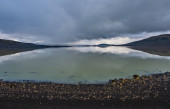 Zatoka podczas odpływu, znajduje się w pobliżu Czarnej plaży Reynisfjara i miejscowości Vik. Sudurland, Islandia, Europa. wrzesień 2019