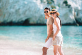 zdjęcie szczęśliwej pary w okularach słonecznych na plaży