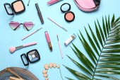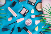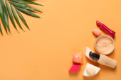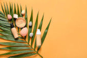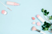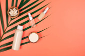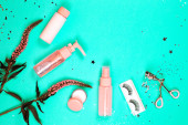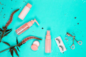 Kosmetyki pielęgnacyjne na pastelowym papierze kolorowe tło