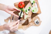 Kobiece dłonie owijające zdrową kanapkę w wosk pszczeli