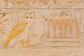Starożytne płaskorzeźby egipskie przedstawiające bogów w świątyni Hatsepsut w Tebach, UNESCO Świat Dziedzictwa UNESCO, Luxor, Egipt