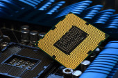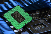 Zdjęcie "Szczegóły Cpu Chip przez gniazdo nowoczesnej płyty głównej komputera z efektami świetlnymi." może być wykorzystywane do celów osobistych i komercyjnych zgodnie z warunkami zakupionej licencji Royalty-free. Obraz jest dostępny do pobrania w jakości wysokiej rozdzielczości do 5760x3840.