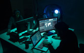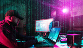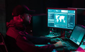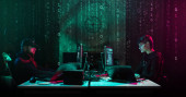 Zdjęcie "Hakerzy dokonujący oszustwa kryptowaluta za pomocą oprogramowania wirusowego i interfejsu komputera. Cyberatak blockchain, ddos i koncepcja złośliwego oprogramowania. Kontekst biura podziemnego." może być wykorzystywane do celów osobistych i komercyjnych zgodnie z warunkami zakupionej licencji Royalty-free. Obraz jest dostępny do pobrania w jakości wysokiej rozdzielczości do 5760x3840.