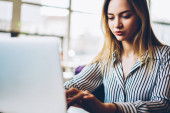 Zdjęcie "selektywne ukierunkowanie atrakcyjnego redaktora patrzącego na współpracownika " może być wykorzystywane do celów osobistych i komercyjnych zgodnie z warunkami zakupionej licencji Royalty-free. Obraz jest dostępny do pobrania w jakości wysokiej rozdzielczości do 5760x3840.