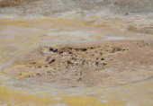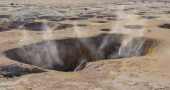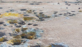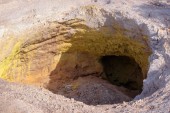 Fumarole siarki z kryształami siarki na kraterze Stefanos Nisyros Grecja
