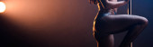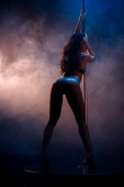 boczny widok sexy striptizerka w bielizna biegun taniec na czarny z dym