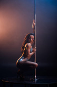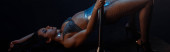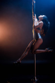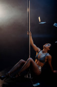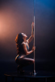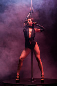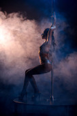 sexy młody striptizerka z zamkniętymi oczami słup taniec na czarny z dym