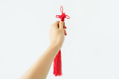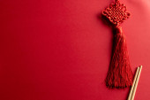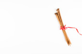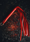 widok z góry skórzany bicz chłosty izolowany na czerwono