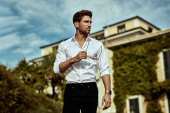 Zdjęcie "Stylowy mężczyzna w okularach przeciwsłonecznych i białej koszuli " może być wykorzystywane do celów osobistych i komercyjnych zgodnie z warunkami zakupionej licencji Royalty-free. Obraz jest dostępny do pobrania w jakości wysokiej rozdzielczości do 5760x3840.
