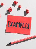 Pisanie notatki pokazującej Przykłady. Business photo showcasing Ilustracja Przykładowy model do naśladowania Przewodnik Wyjaśnienie Na przykład kolorowy pognieciony papier pusty przypomnienie biały podłoga clothespin.