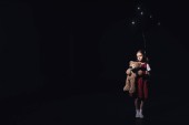 demoniczna dziewczyna w koszuli nocnej stojąca w pobliżu ściany