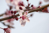 brunch wiśniowy z pączkami i nowymi pastelowymi różowymi kwiatami 8