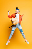 Zdjęcie "szczęśliwy student w okularach dotykając słuchawek podczas uśmiechania się aparat odizolowany na żółto" może być wykorzystywane do celów osobistych i komercyjnych zgodnie z warunkami zakupionej licencji Royalty-free. Obraz jest dostępny do pobrania w jakości wysokiej rozdzielczości do 5760x3840.