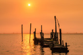 Zdjęcie "Zapierające dech w piersiach zachody słońca nad domem Stilt i sieci rybackie wzdłuż Delty Po. Włochy" może być wykorzystywane do celów osobistych i komercyjnych zgodnie z warunkami zakupionej licencji Royalty-free. Obraz jest dostępny do pobrania w jakości wysokiej rozdzielczości do 5760x3840.
