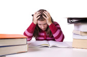kobieta koszula czerwony książek ręce na świątynie