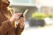 Zdjęcie "Blisko kobiety ręce za pomocą smartfona z tła ulicy miasta" może być wykorzystywane do celów osobistych i komercyjnych zgodnie z warunkami zakupionej licencji Royalty-free. Obraz jest dostępny do pobrania w jakości wysokiej rozdzielczości do 5760x3840.