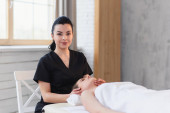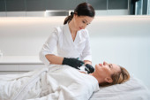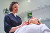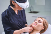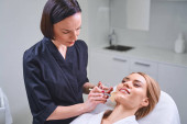 Profesjonalna kosmetyczka pracująca z klientem w salonie