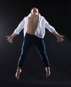 chory psychicznie człowiek w kaftan na czarnym tle