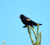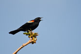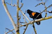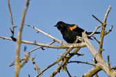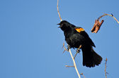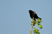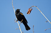 czerwony - skrzydlaty blackbird wznosi się w drzewo