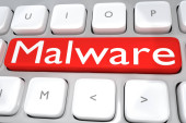 koncepcja bezpieczeństwa: malware na tle klawiatury komputera