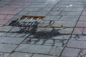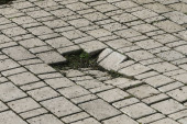 deformacja bruku brukowego z powodu nieprawidłowo przygotowanej podstawy