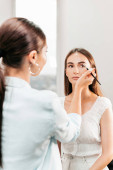makijaż artysta gospodarstwa pędzel kosmetyczne podczas stosowania cienia do powiek na piękny model