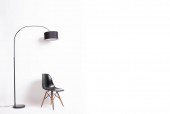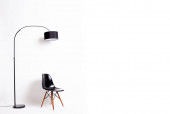 kolaż czarno-nowoczesne lampy i gniazdka elektryczne na białej ścianie