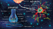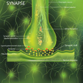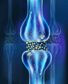 Komórki synapsy anatomicznej. Sygnał przekazu impulsu w żywym organizmie. Sygnał w mózgu. Połączenia synapsyjne w myślach form mózgowych, nauka koncepcyjna. Synapsa strukturalna do celów edukacyjnych