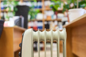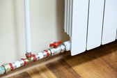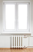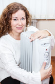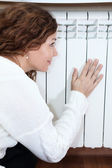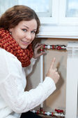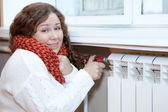 kobieta kontroli termostat na centralne ogrzewanie grzejnik