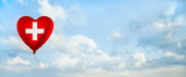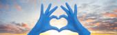Serce zbudować ręce lekarza w medycznych rękawic chirurgicznych na tle chmur nieba