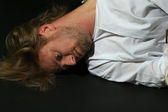 chory psychicznie człowiek w kaftan na czarnym tle