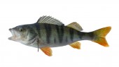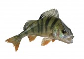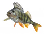 Żywy świeży okoń ryba odizolowany na biały tło. Perca fluviatilis