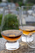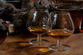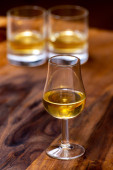 Zdjęcie "Szklanki do degustacji ze starą szkocką whisky lub amerykańskim burbonem na starym ciemnodrewnianym stole vintage z ziarnem jęczmienia" może być wykorzystywane do celów osobistych i komercyjnych zgodnie z warunkami zakupionej licencji Royalty-free. Obraz jest dostępny do pobrania w jakości wysokiej rozdzielczości do 5760x3840.