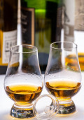 Zdjęcie "Szklanki do degustacji ze starą szkocką whisky lub amerykańskim burbonem na starym ciemnodrewnianym stole vintage z ziarnem jęczmienia" może być wykorzystywane do celów osobistych i komercyjnych zgodnie z warunkami zakupionej licencji Royalty-free. Obraz jest dostępny do pobrania w jakości wysokiej rozdzielczości do 5760x3840.