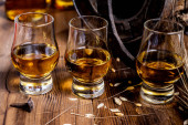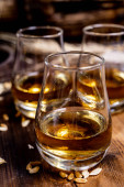 Zdjęcie "Małe kieliszki degustacyjne ze starą szkocką whisky na starym ciemnym drewnianym stole vintage z ziarnem jęczmienia zbliżyć" może być wykorzystywane do celów osobistych i komercyjnych zgodnie z warunkami zakupionej licencji Royalty-free. Obraz jest dostępny do pobrania w jakości wysokiej rozdzielczości do 5760x3840.