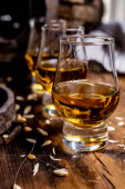 Zdjęcie "Speyside szkockiej degustacja whisky na starym ciemnym drewnianym stole vintage z ziaren jęczmienia zbliżyć" może być wykorzystywane do celów osobistych i komercyjnych zgodnie z warunkami zakupionej licencji Royalty-free. Obraz jest dostępny do pobrania w jakości wysokiej rozdzielczości do 5760x3840.