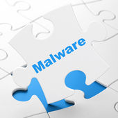 koncepcji ochrony: złamane Tarcza i malware na tle klawiatury komputera