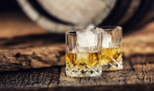 Glencairn degustacja kubki whisky z drewnianą beczką, torf i jęczmień obok nich