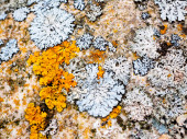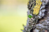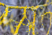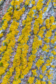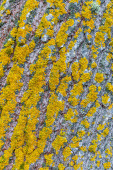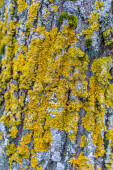 Powierzchnia kory z żółtym mchem. Tekstura drewna.