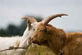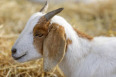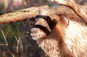 Wypas kóz w celu usunięcia wieloletnich traw i chwastów. Hrabstwo San Mateo, Kalifornia, USA.